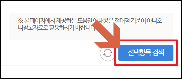- 스크롤을 아래로 내려서 선택항목 검색을 클릭해 주세요. (사진 3 참조)
