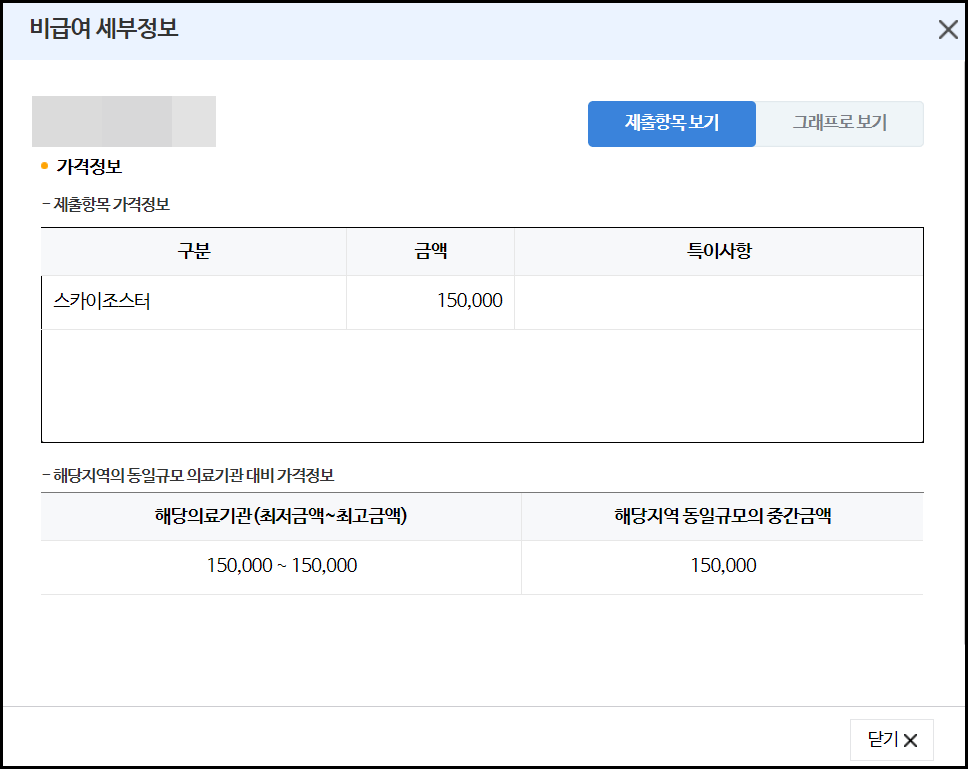 - 비급여 진료비 항목에 대상포진을 입력 후 돋보기 모양을 눌러줍니다. (사진 1 참조)