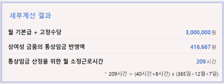 이는 근로계약서상에 기재된 고정급여로, 기본급, 상여금, 직책수당 등을 포함합니다. 반면 성과급이나 포상금은 상황에 따라 변동되기 때문에 통상임금에는 해당하지 않습니다.